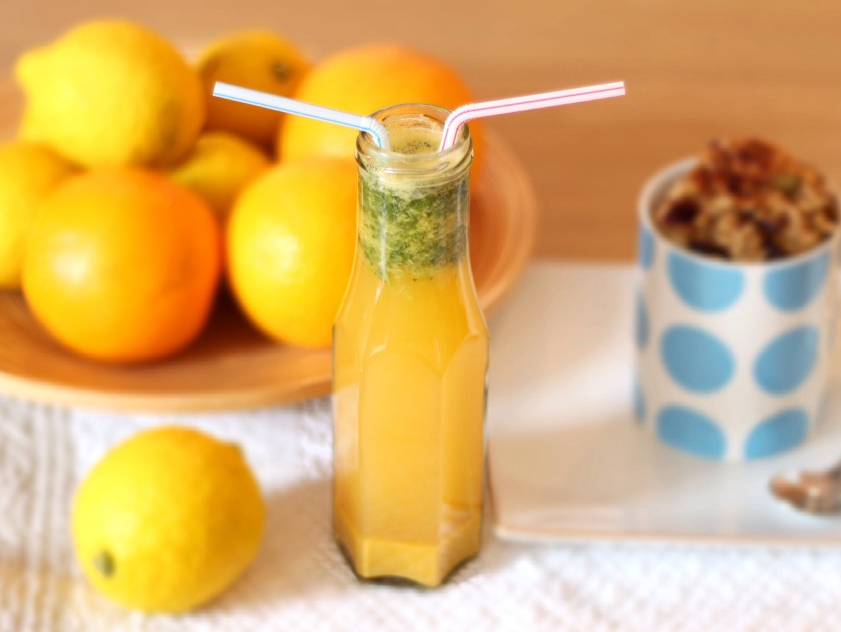 Pomaranč a polovicu citróna odšťavíme. Mätu premyjeme. Všetky ingerdiencie dáme do mixéra a mixujeme 1-2 minúty. Po vypití SuperFitMonkey detoxikačného energizera budete tancovať!